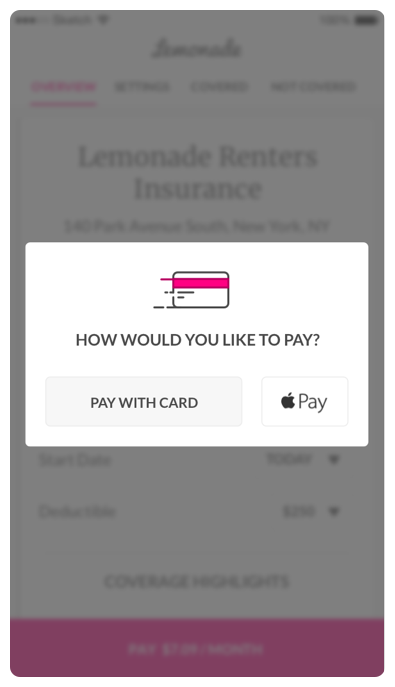 The Lemonade API supports seamless quoting, policy creation, and payment processing, and can be implemented in minutes.